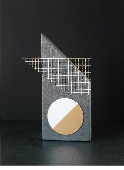 wooden polyhedron / metal rhombus (side cm 6,5)